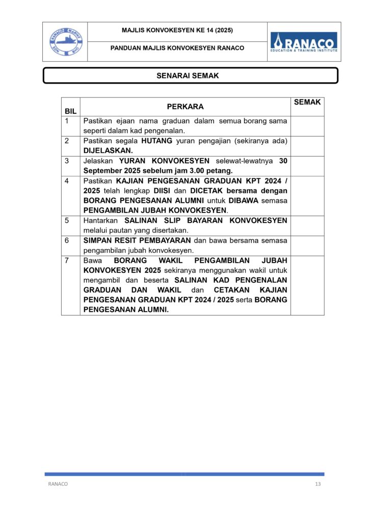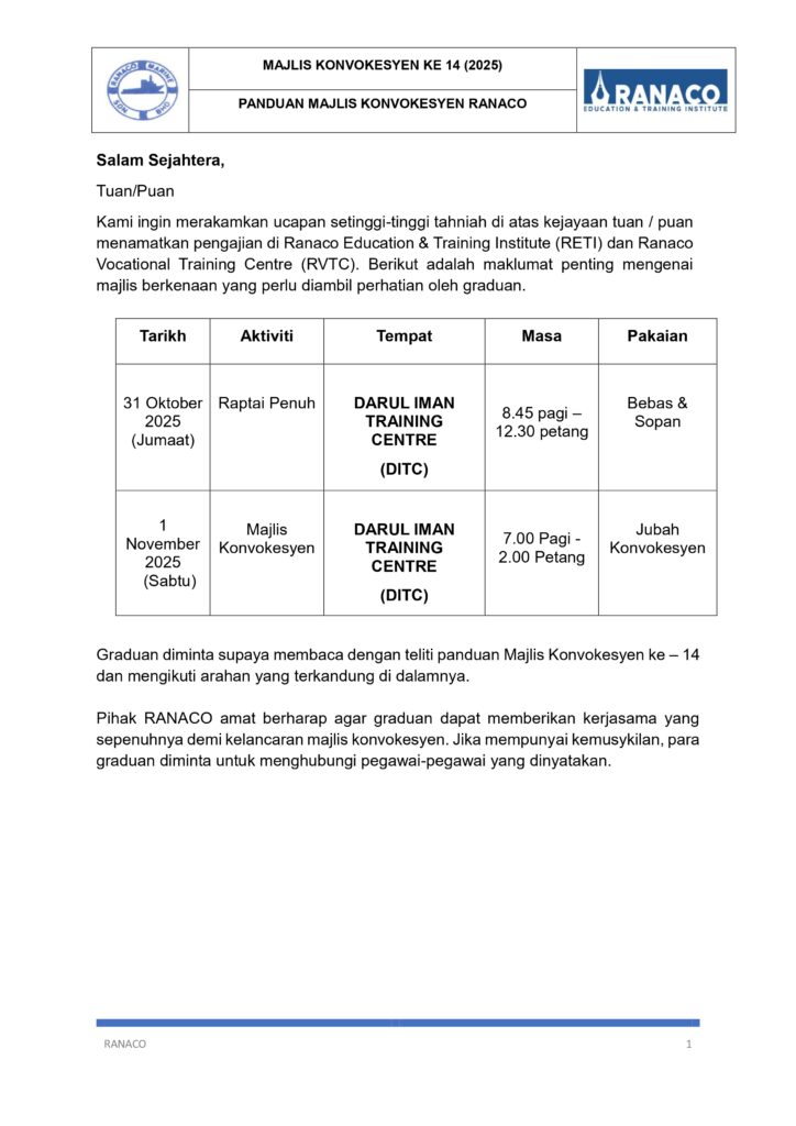 Sekiranya mempunyai pertanyaan, graduan boleh menghubungi di alamat emel [email protected]