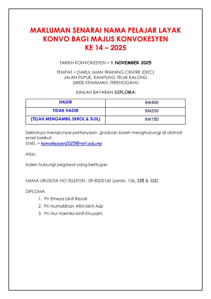 Hubungi urusetia (Diploma) di talian 09-8503160 (sambungan 136, 135 & 312):